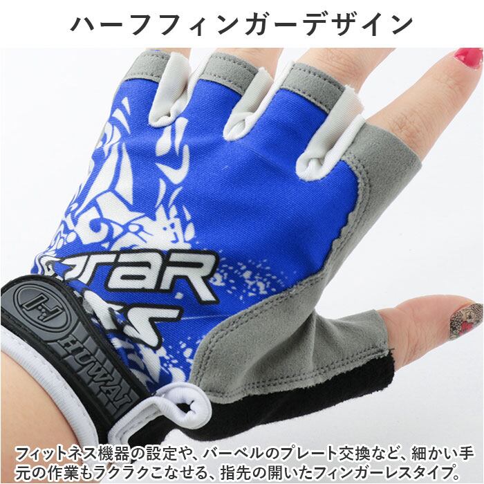 ・フィットネス機器の設定や、バーベルのプレート交換など、細かい手元の作業もラクラクこなせる、指先の開いたフィンガーレスタイプ。