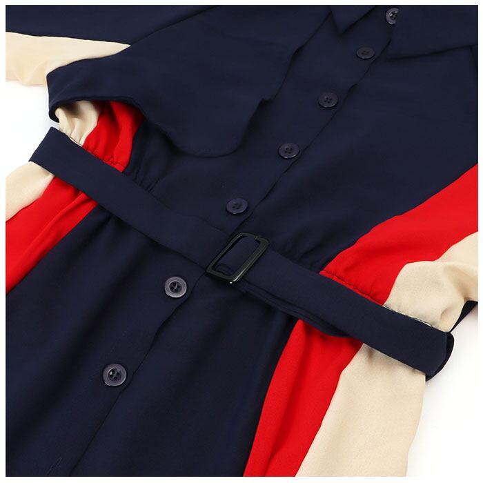 ・トリコロールカラーが目を惹く1着♪きちんと感のあるシャツデザインもポイント。
