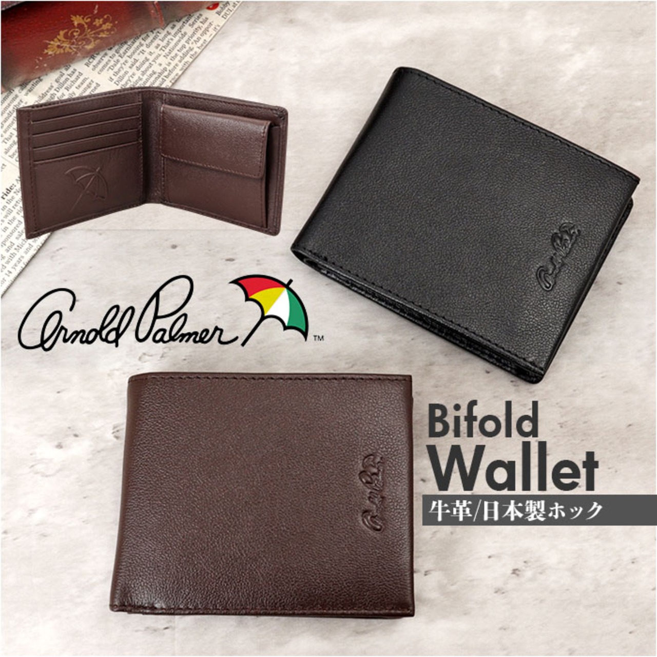 ・色んな場面で、スマートに持ち歩ける「ArnoldPalmer 二つ折り財布」。