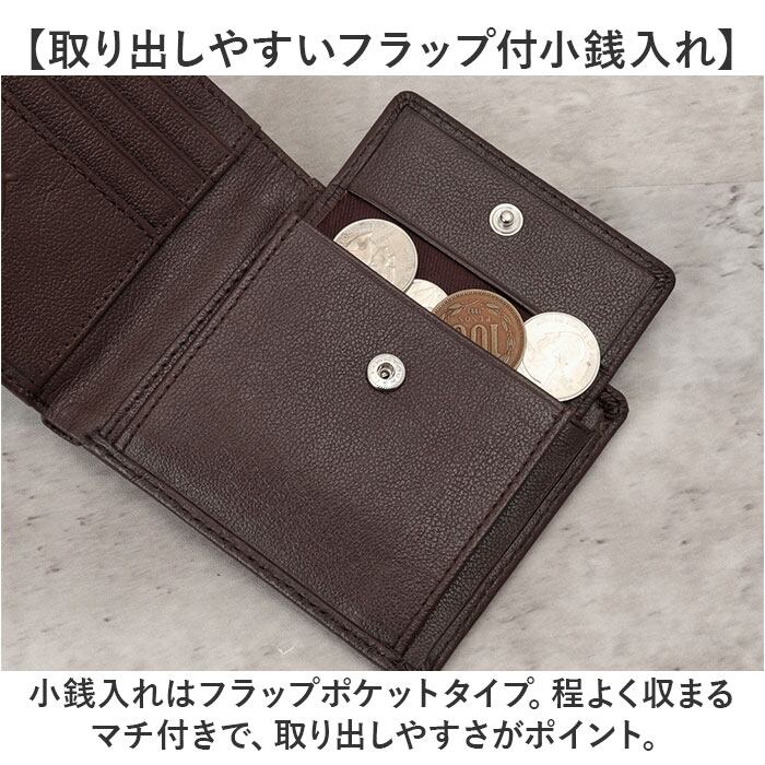 ・小銭入れはフラップポケットタイプ。程よく収まるマチ付きで、取り出しやすさがポイント。