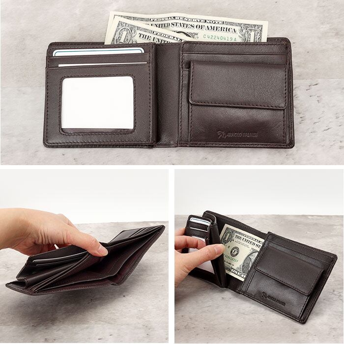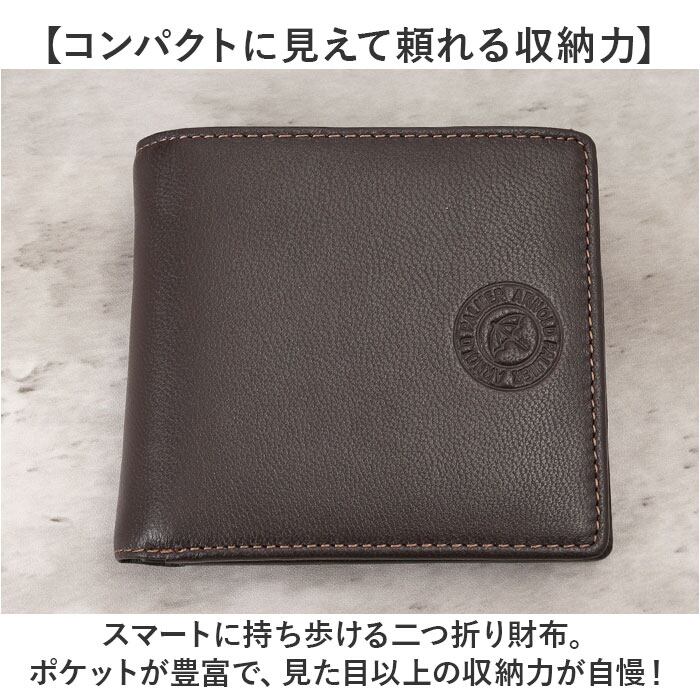 ・スマートに持ち歩ける二つ折り財布。ポケットが豊富で、見た目以上の収納力が自慢!