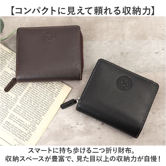 ・スマートに持ち歩ける二つ折り財布。収納スペースが豊富で、見た目以上の収納力が自慢!