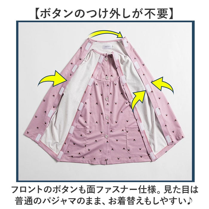 ・フロントのボタンも面ファスナー仕様。見た目は普通のパジャマのまま、お着換えもしやすい♪
