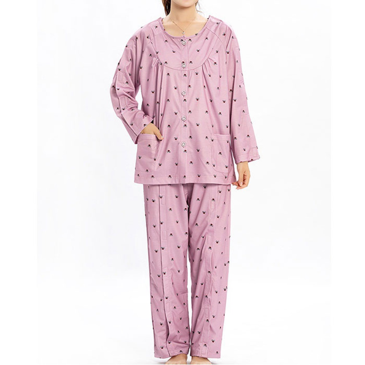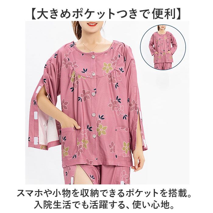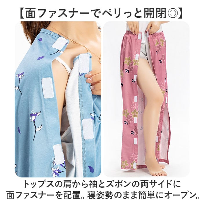 介護パジャマ 上下セット 面ファスナー レディース