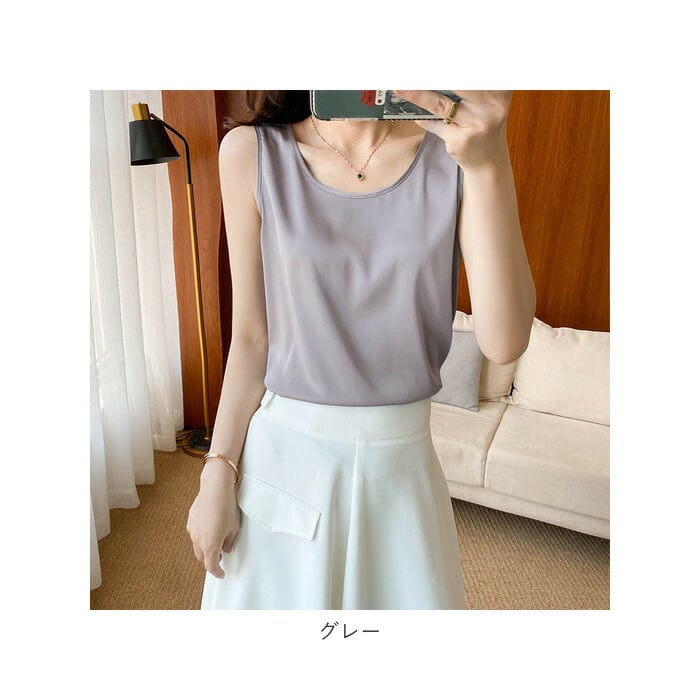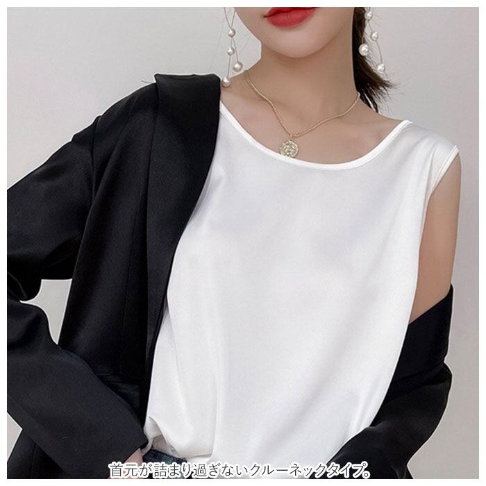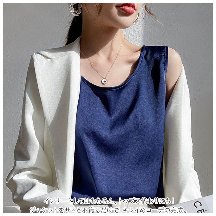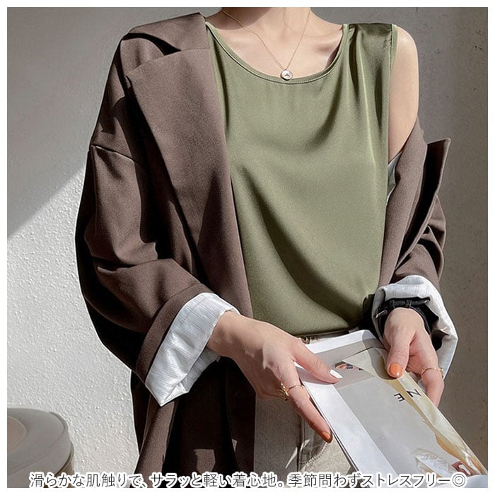 ・インナーとしてはもちろん、トップス代わりにも!ジャケットをサッと羽織るだけで、キレイめコーデの完成。