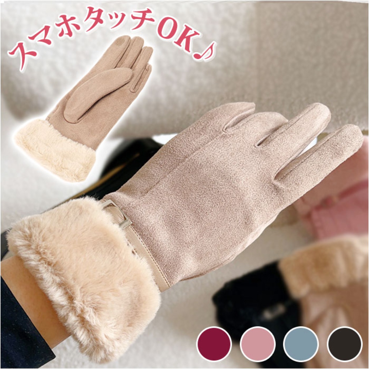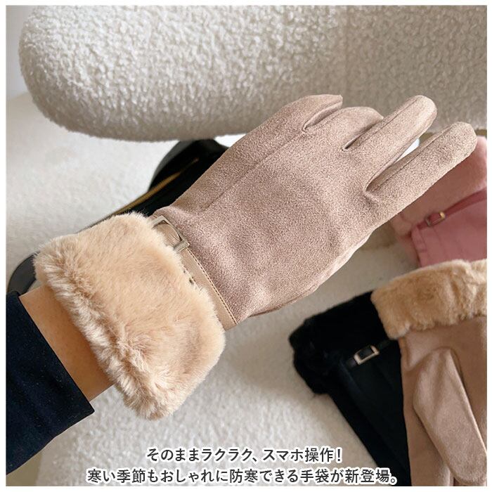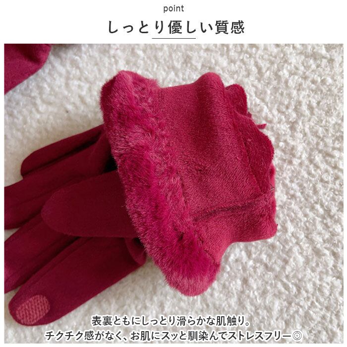 手袋 レディース スマホ対応 通販 てぶくろ 手ぶくろ グローブ スマホ手袋 5本指 防寒 防風 暖かい 秋冬 おしゃれ かわいい スエード フェイクファー タブレット タッチパネル対応 寒さ対策 保温 通勤 通学 自転車 普段使い シンプル 上品 エレガント