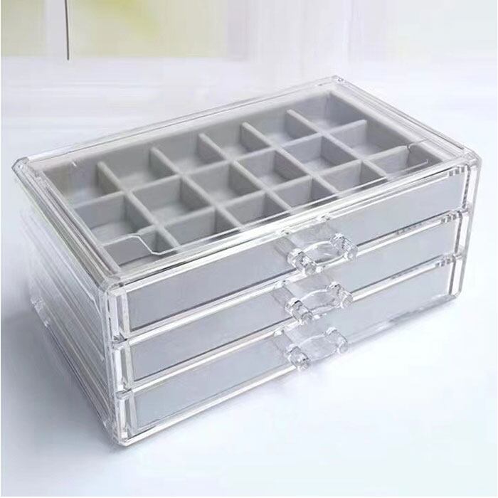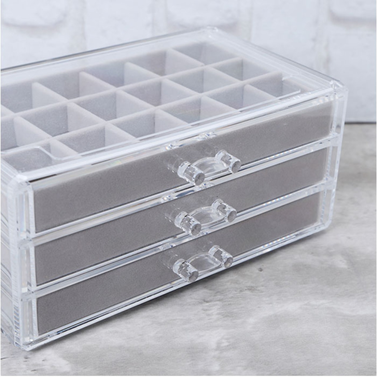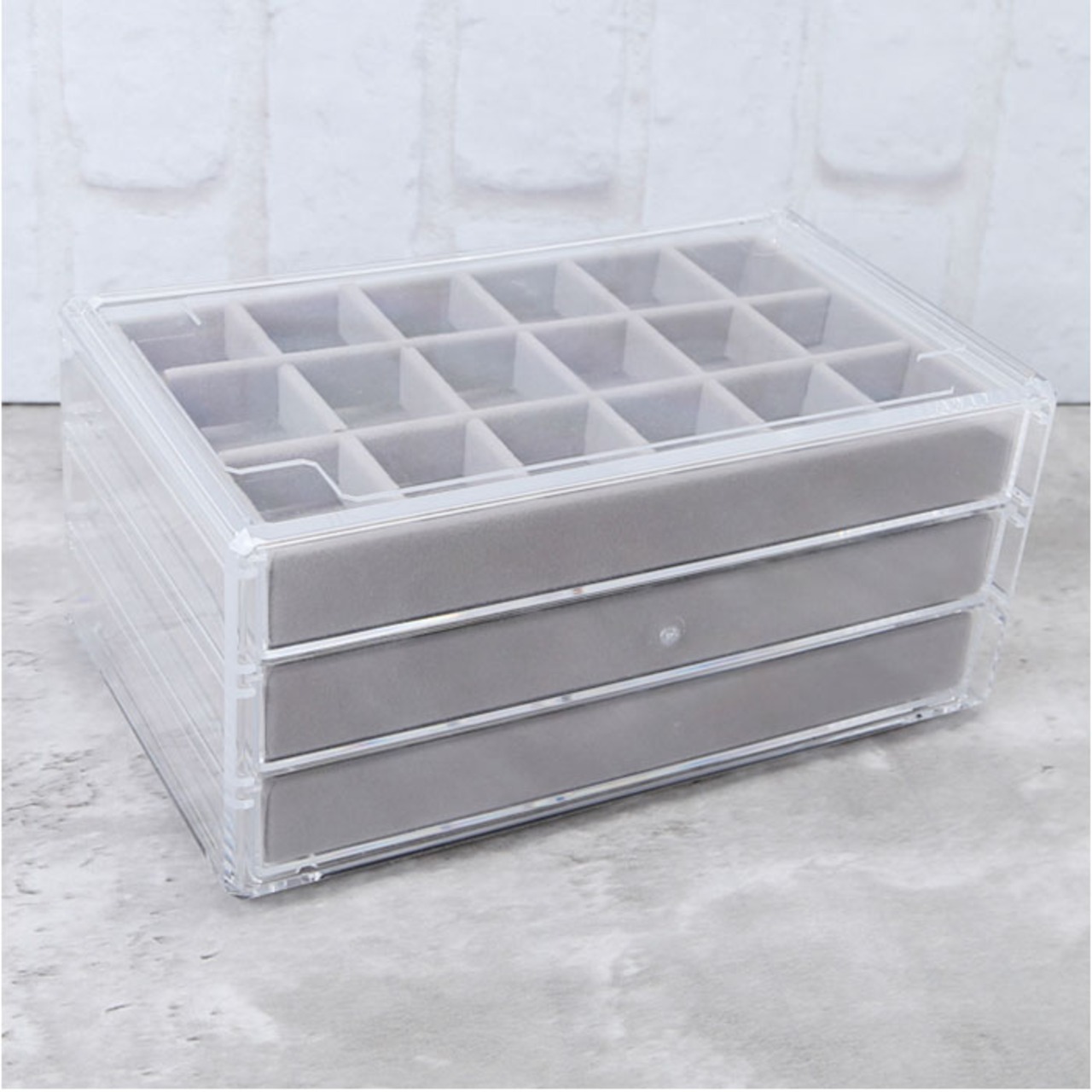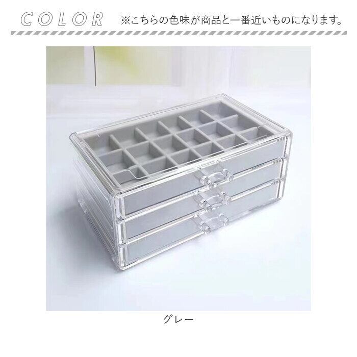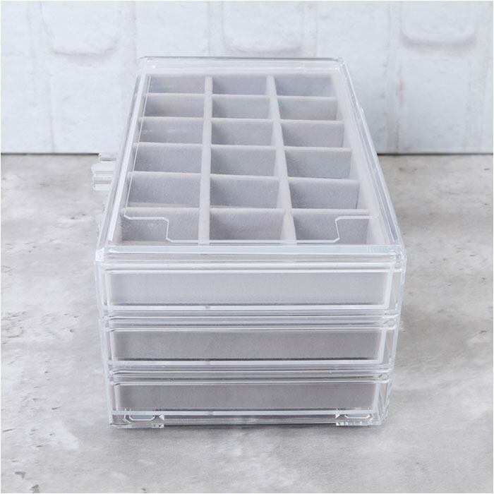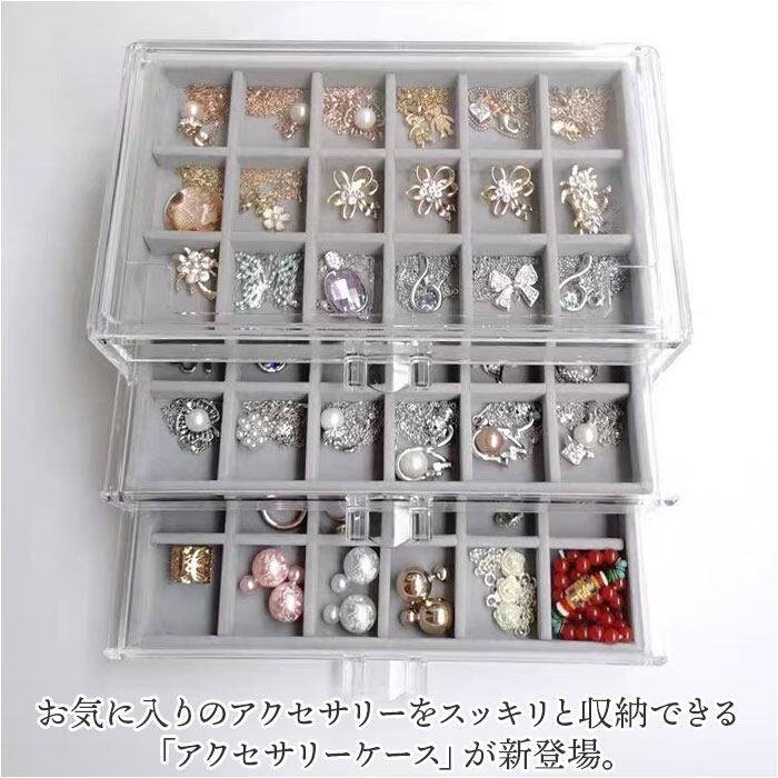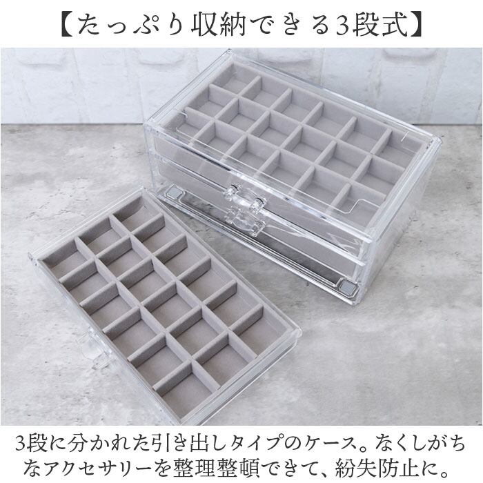 ・3段に分かれた引き出しタイプのケース。なくしがちなアクセサリーを整理整頓できて、紛失防止に。