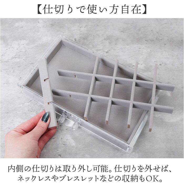 ・内側の仕切りは取り外し可能。仕切りを外せば、ネックレスやブレスレットなどの収納もOK。