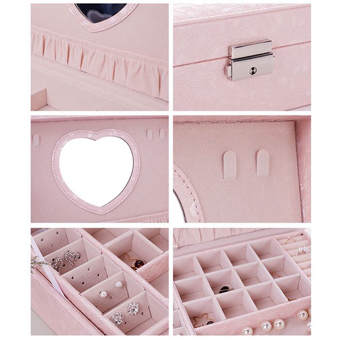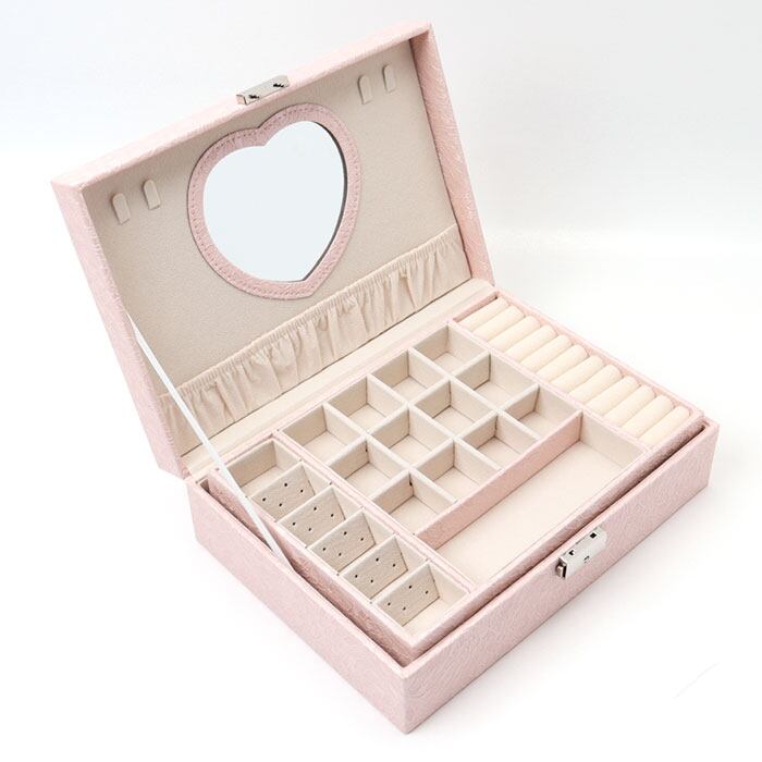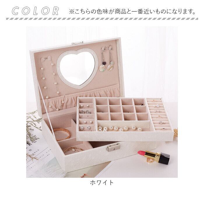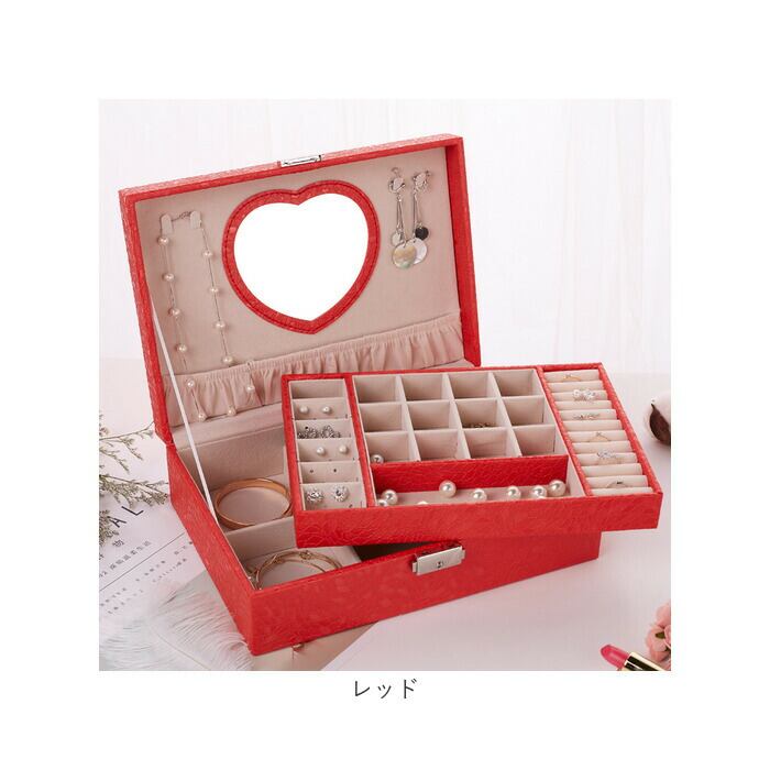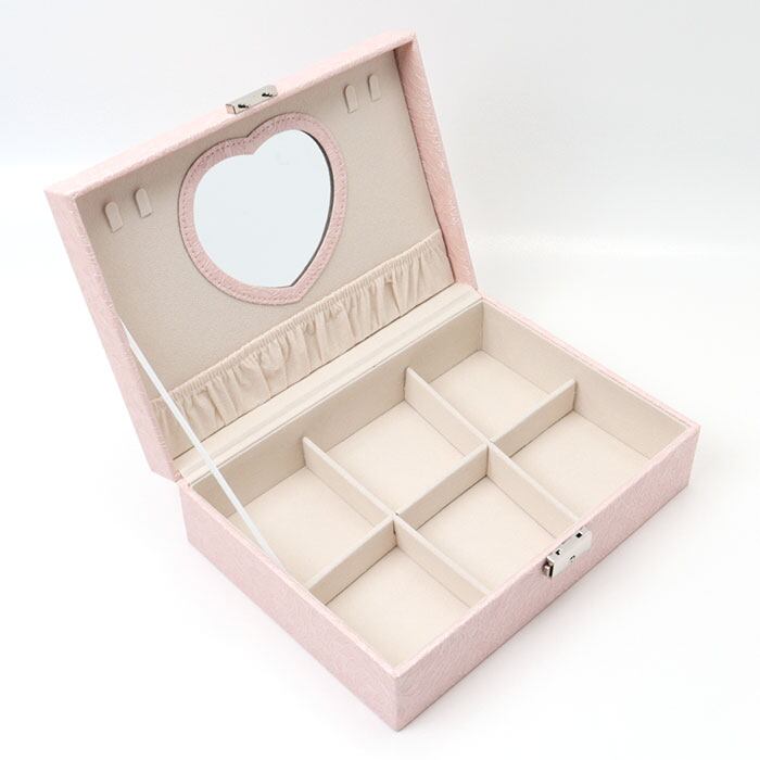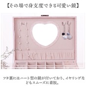 ・フタ裏にはハート型の鏡が付いており、イヤリングなどもスムーズに着脱。