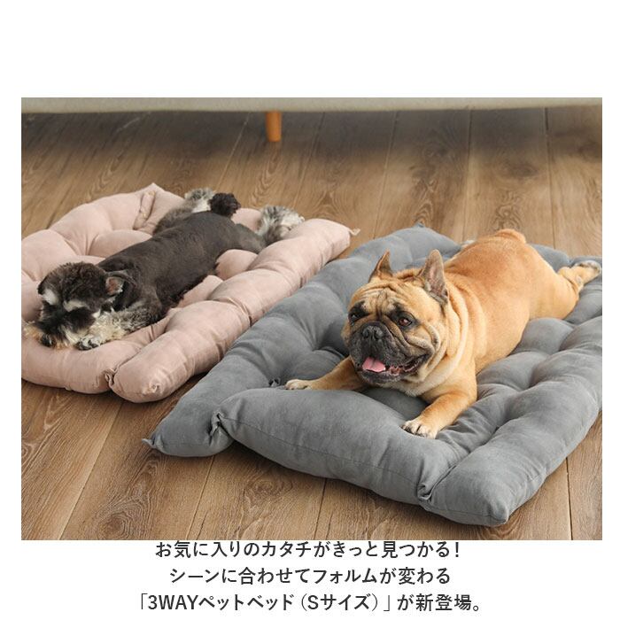 ・お気に入りのカタチがきっと見つかる!シーンに合わせてフォルムが変わる「3WAYペットベッド(Sサイズ)」が新登場。