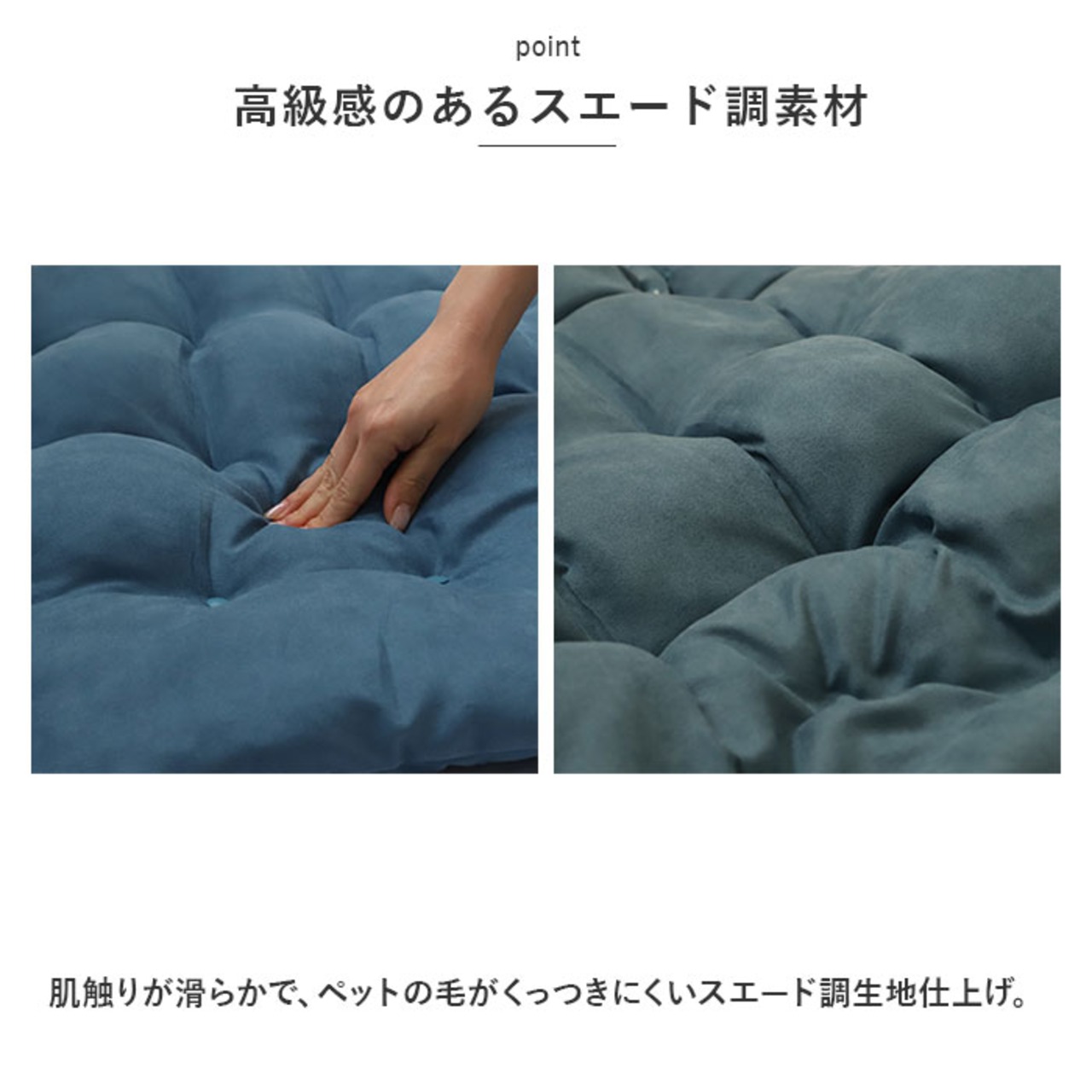 ・肌触りが滑らかで、ペットの毛がくっつきにくいスエード調生地仕上げ。