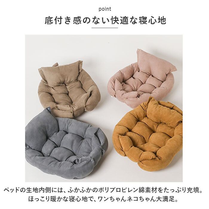 ・ベッドの生地内側には、ふかふかのポリプロピレン綿素材をたっぷり充填。ほっこり暖かな寝心地で、ワンちゃんネコちゃん大満足。