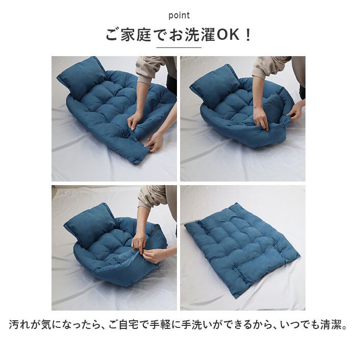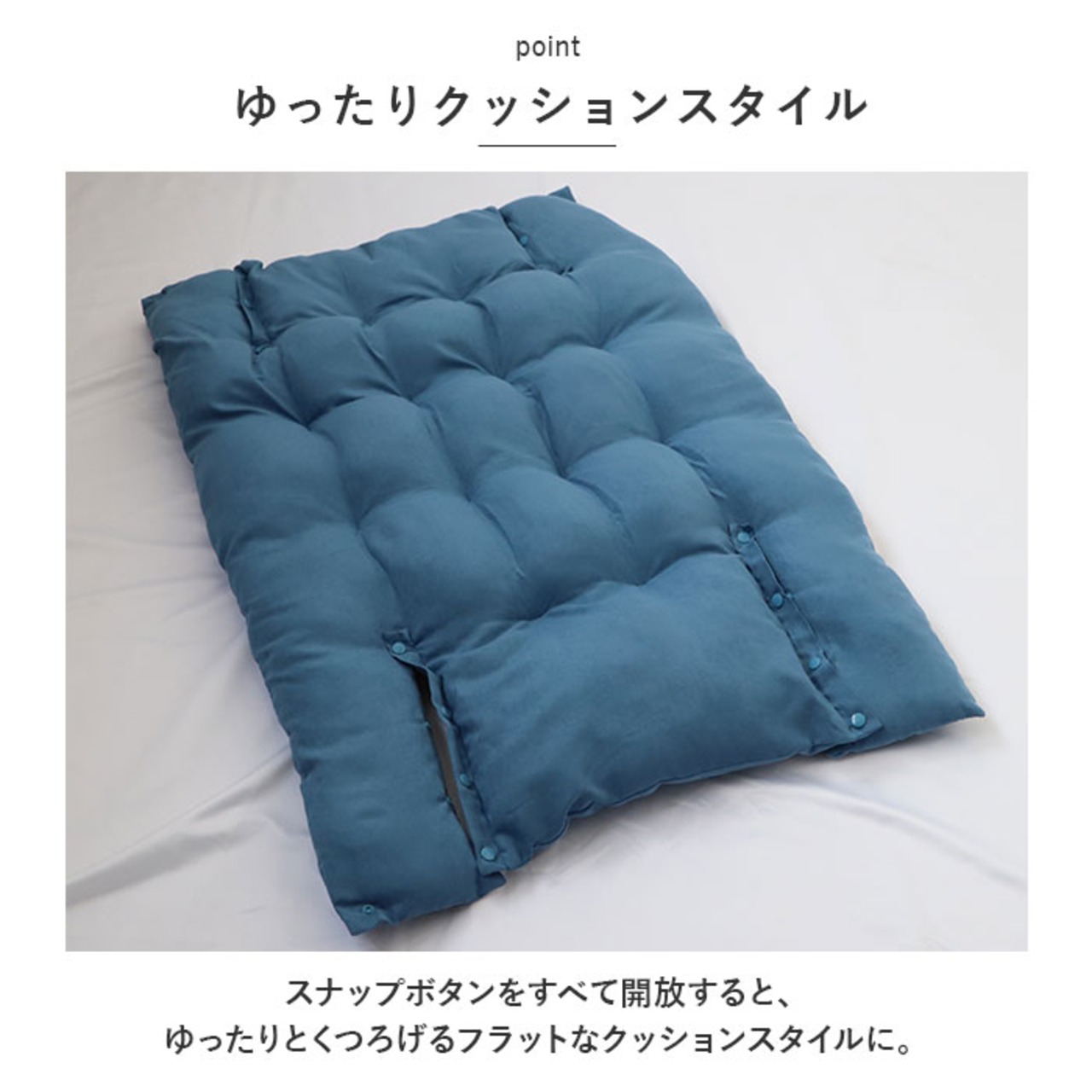 ・スナップボタンをすべて開放すると、ゆったりとくつろげるフラットなクッションスタイルに。