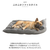 ・片側の大きな背もたれクッションを立ち上げ、両端のフラップを留めれば「ソファスタイル」に。あご枕の好きなワンちゃん・ネコちゃんにぴったり。