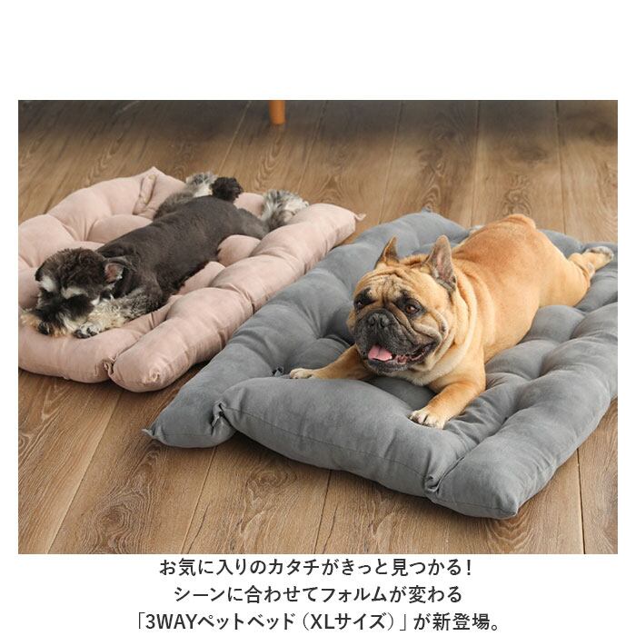 ・お気に入りのカタチがきっと見つかる!シーンに合わせてフォルムが変わる「3WAYペットベッド(XLサイズ)」が新登場。
