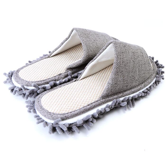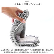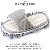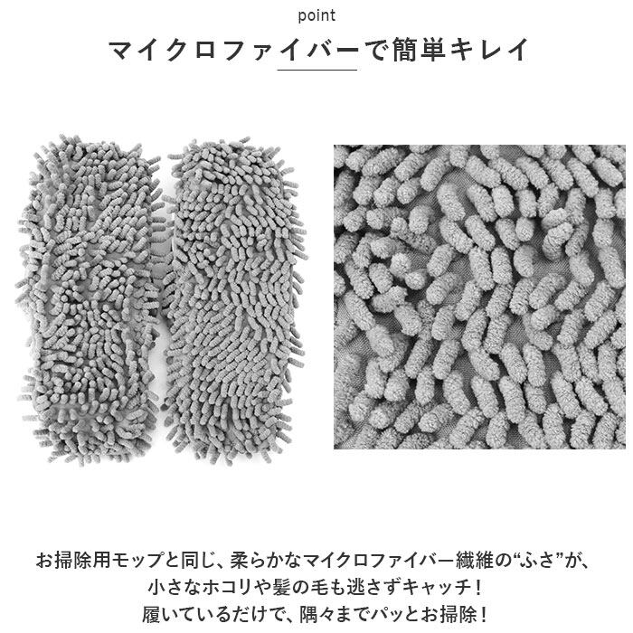 ・お掃除用モップと同じ、柔らかなマイクロファイバー繊維の“ふさ”が、小さなホコリや髪の毛も逃さずキャッチ!履いているだけで、隅々までパッとお掃除!