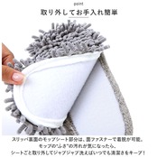 ・スリッパ裏面のモップシート部分は、面ファスナーで着脱が可能。モップの“ふさ”の汚れが気になったら、シートごと取り外してジャブジャブ洗えばいつでも清潔さをキープ!