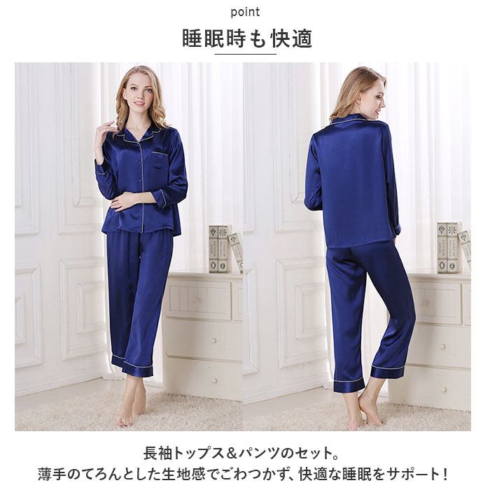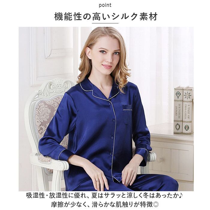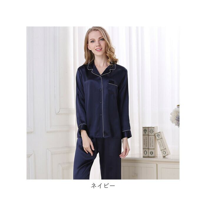 パジャマ レディース シルク 通販 ナイトウェア ルームウェア 部屋着 寝巻 ズボン 前開き 長ズボン 長袖 絹 ボタン ポケット 大きいサイズ 通気性 保温性 快適