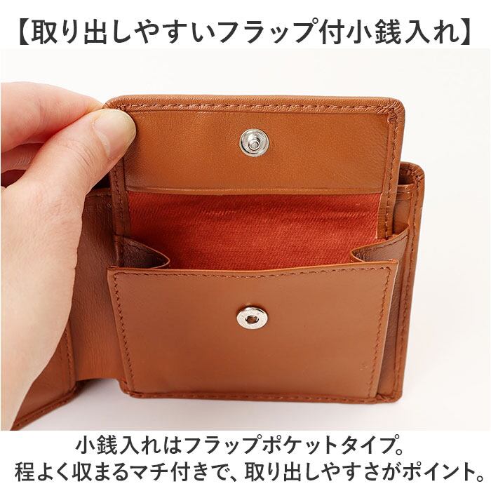・小銭入れはフラップポケットタイプ。程よく収まるマチ付きで、取り出しやすさがポイント。