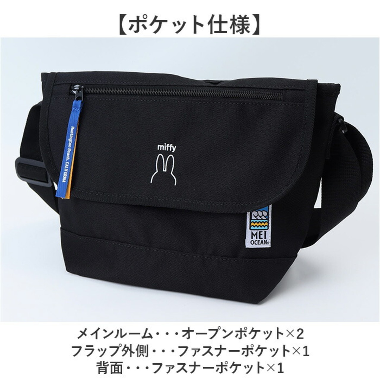 ・MEI OCEANのロゴパッチとカラーリボンを引手に配置。スポーティな印象の仕上がり。