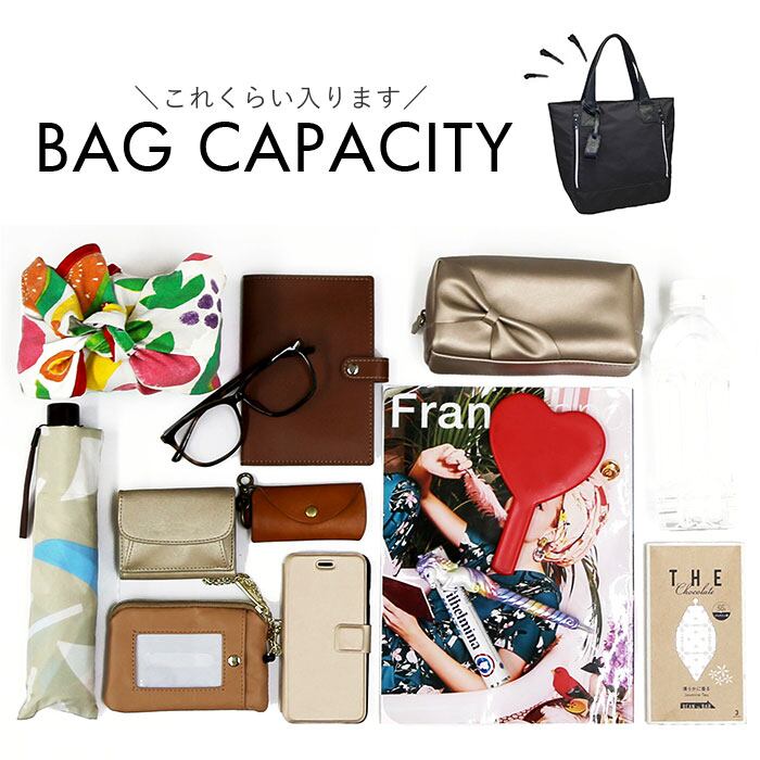 ・マチ幅を広く設けているのでお弁当箱やコスメポーチもしっかり収納可能。