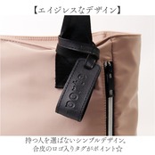 ・持つ人を選ばないシンプルデザイン。合皮のロゴ入りタグがポイント☆