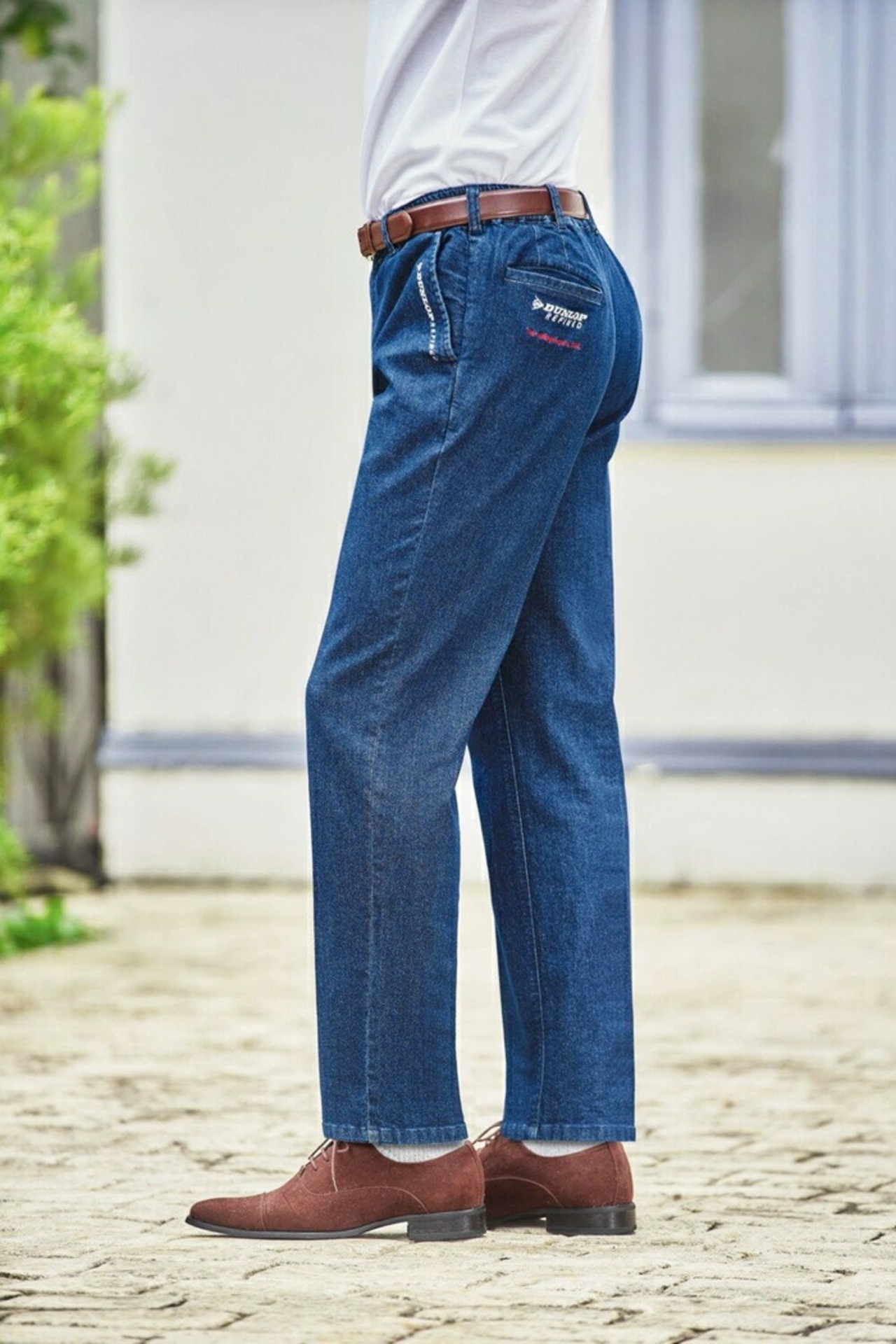 ・すっきりシルエットに、ブランド刺しゅうが冴える大人のデニム。