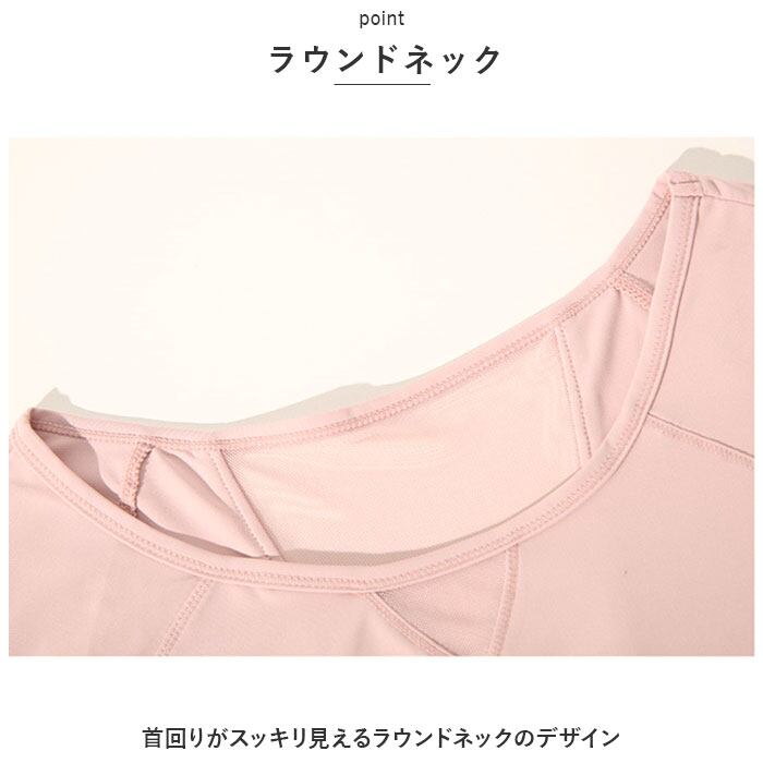 ・首回りがスッキリ見えるラウンドネックのデザイン。