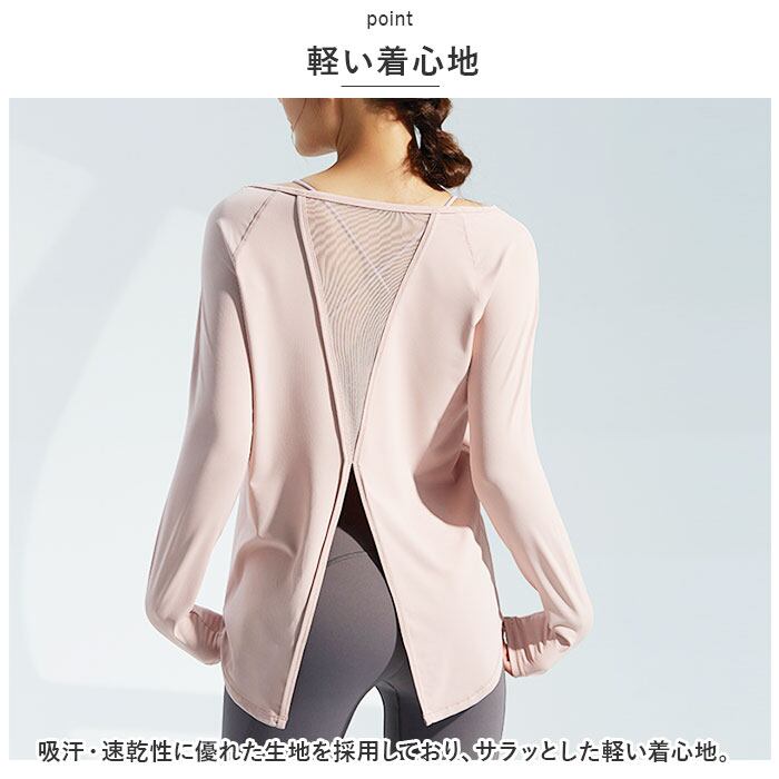 ・ヨガやフィットネスでのトレーニングなどで活躍する長袖タイプのヨガウェア。