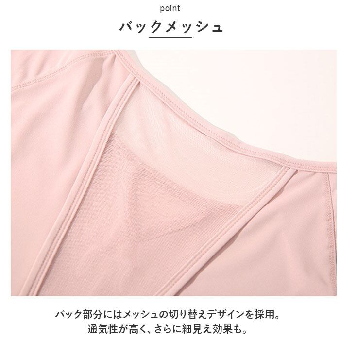 ・バック部分にはメッシュの切り替えデザインを採用。通気性が高く、さらに細見え効果も。