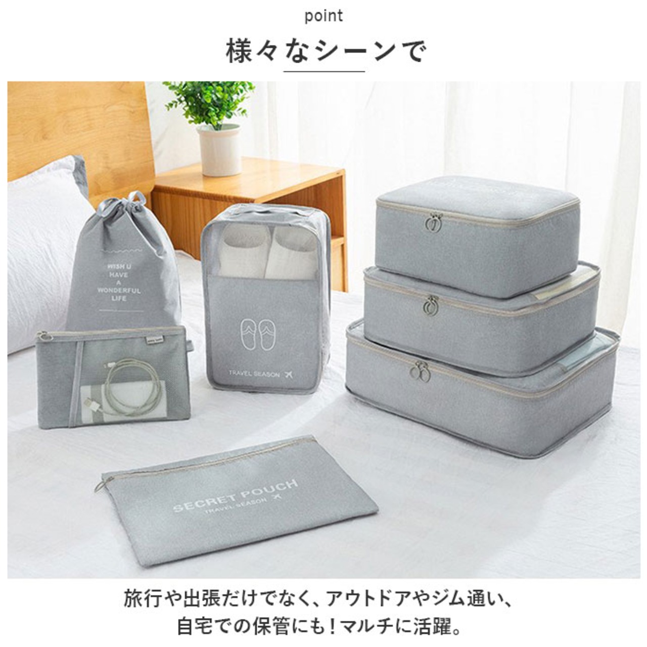 ・旅行や出張だけでなく、アウトドアやジム通い、自宅での保管にも!マルチに活躍。