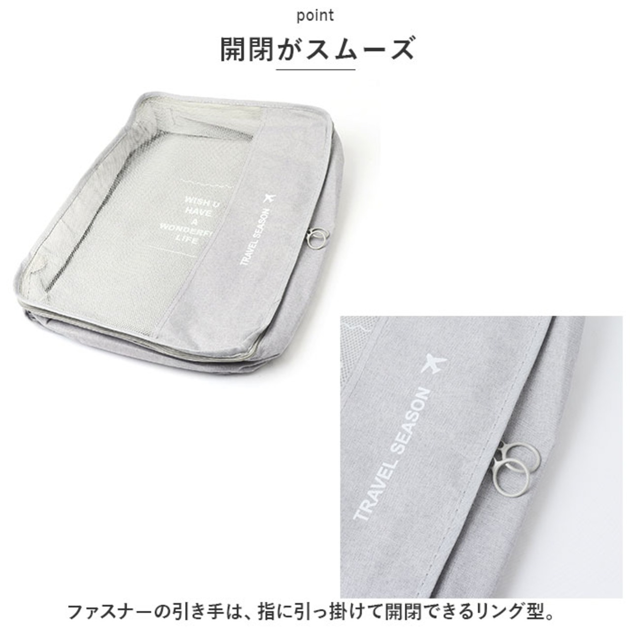 ・ファスナーの引き手は、指に引っ掛けて開閉できるリング型。
