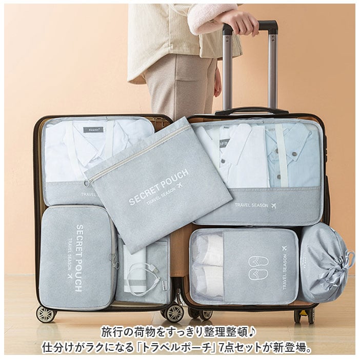 ・旅行の荷物をすっきり整理整頓♪仕分けがラクになる「トラベルポーチ」7点セットが新登場。