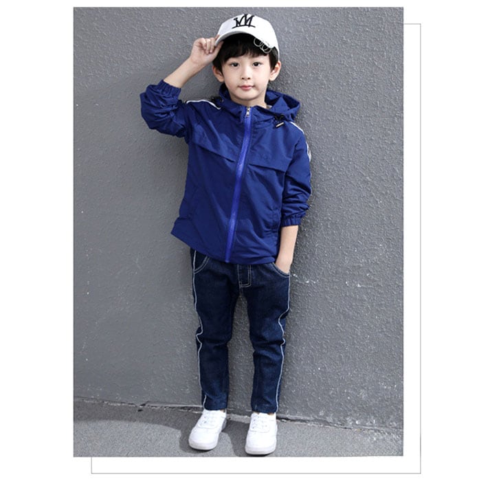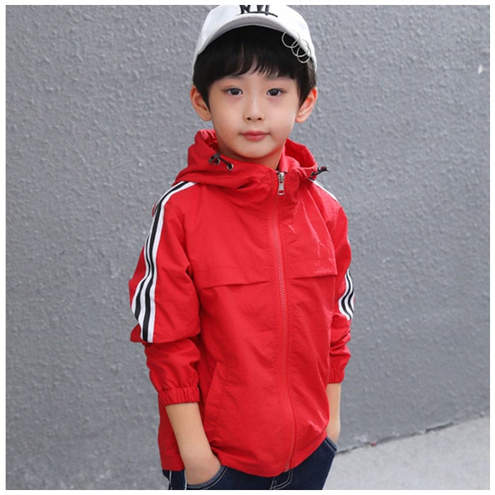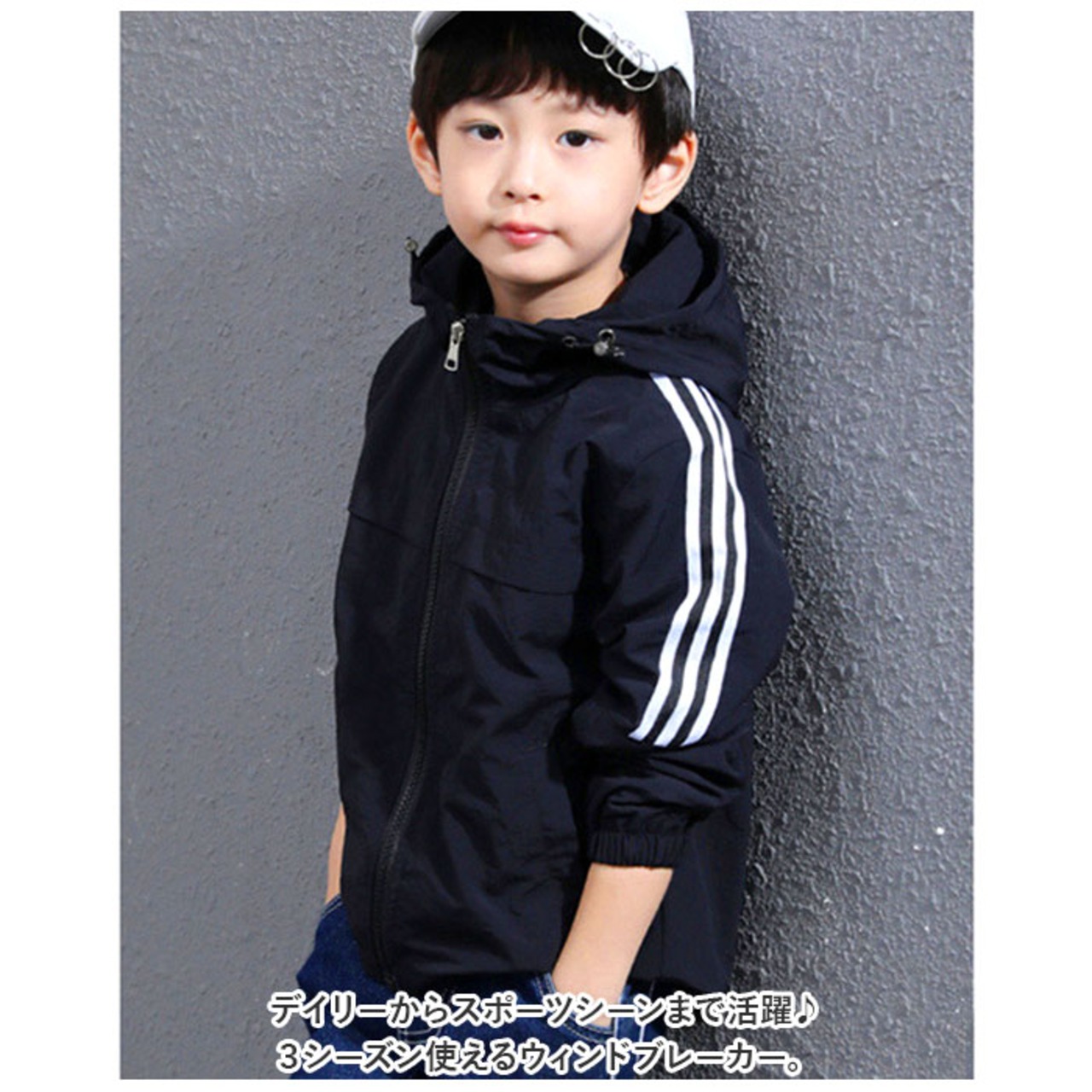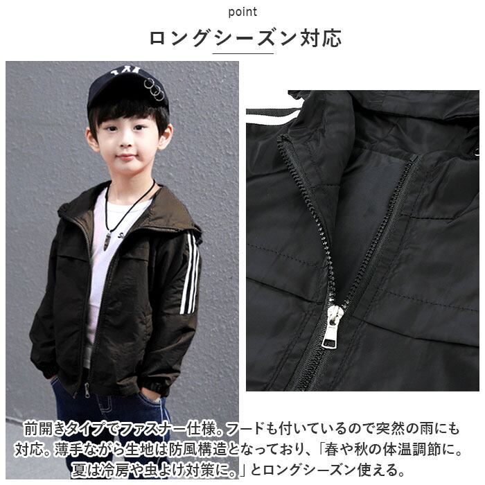 ・前開きタイプでファスナー仕様。フードも付いているので突然の雨にも対応。薄手ながら生地は防風構造となっており、「春や秋の体温調節に。夏は冷房や虫よけ対策に。」とロングシーズン使える。