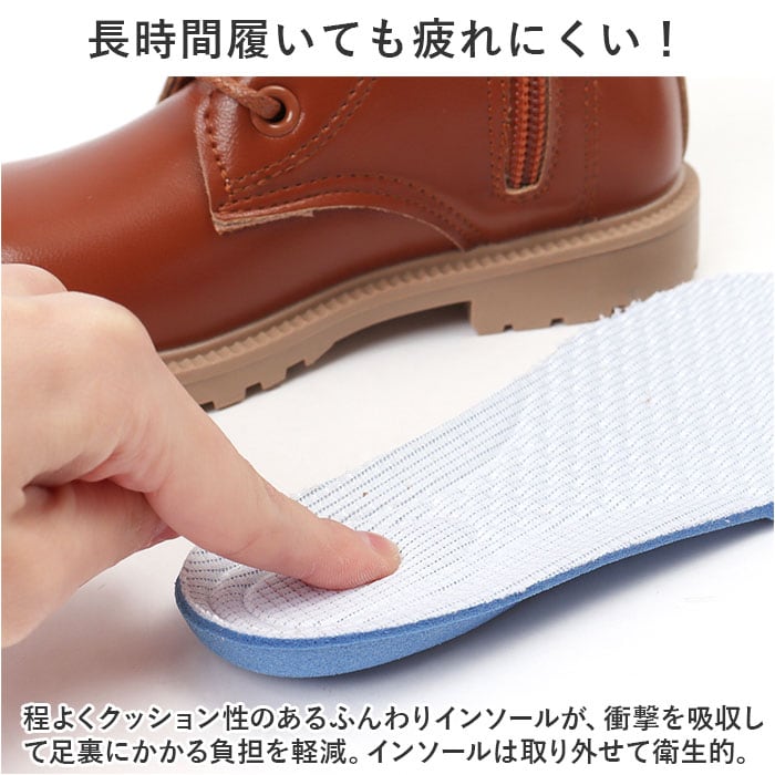 ・程よくクッション性のあるふんわりインソールが、衝撃を吸収して足裏にかかる負担を軽減。インソールは取り外せて衛生的。