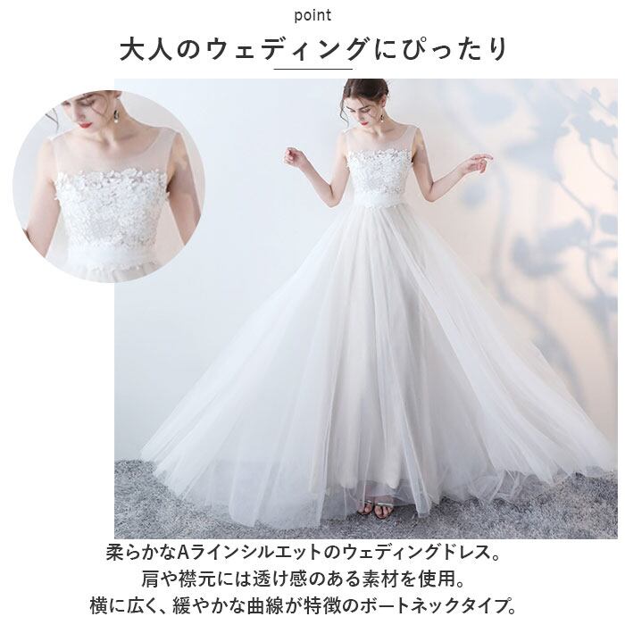 ・肩や襟元には透け感のある素材を使用。横に広く、緩やかな曲線が特徴のボートネックタイプ。