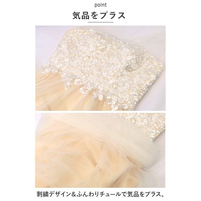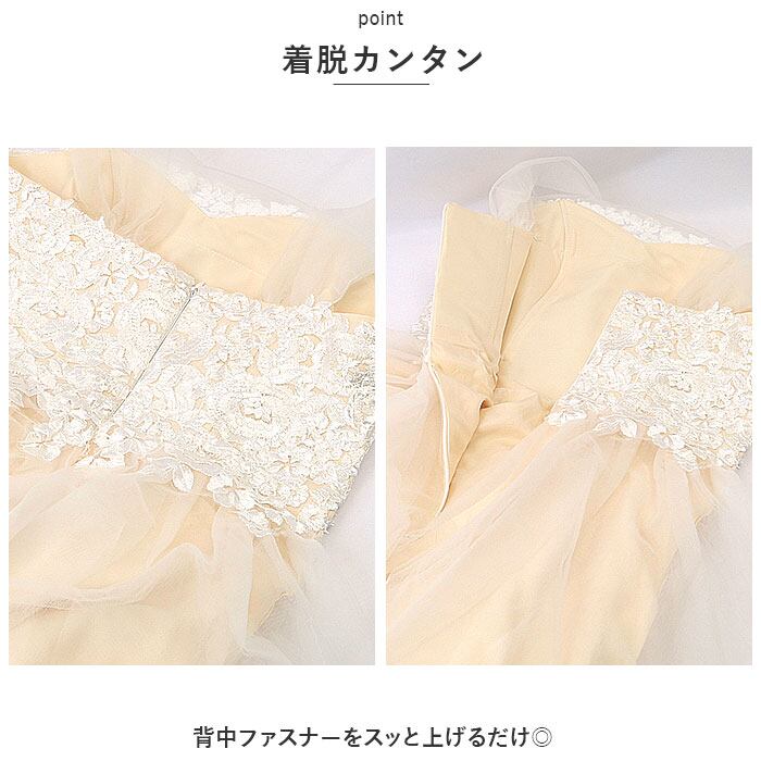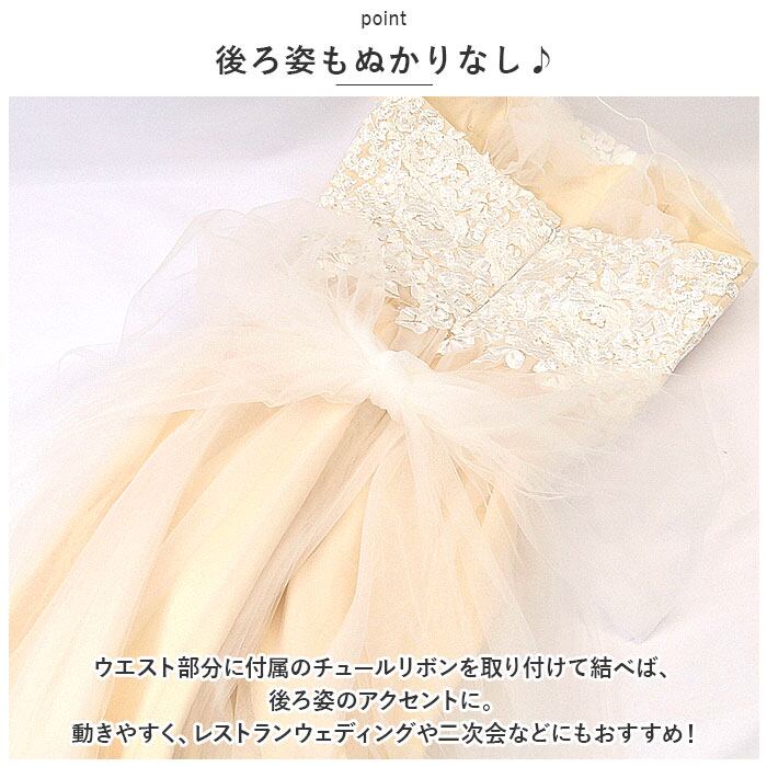 ・ウエスト部分に付属のチュールリボンを取り付けて結べば、後ろ姿のアクセントに。