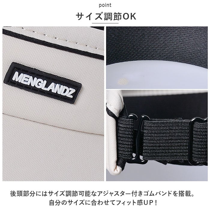・後頭部分にはサイズ調節可能なアジャスター付きゴムバンドを搭載。自分のサイズに合わせてフィット感UP!