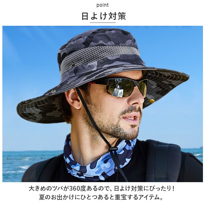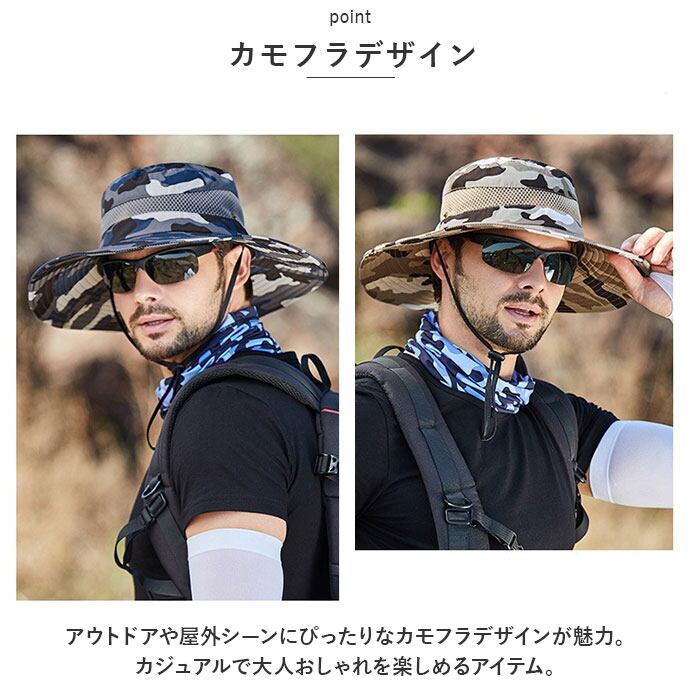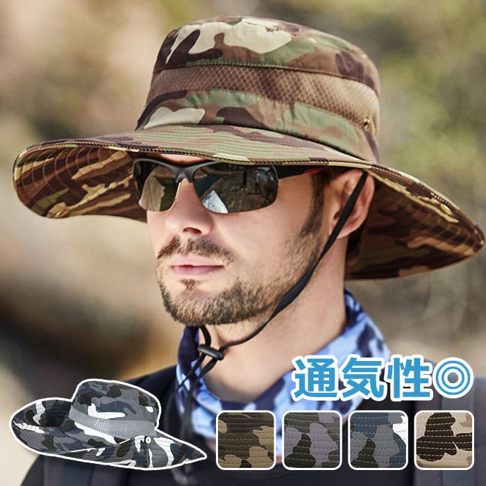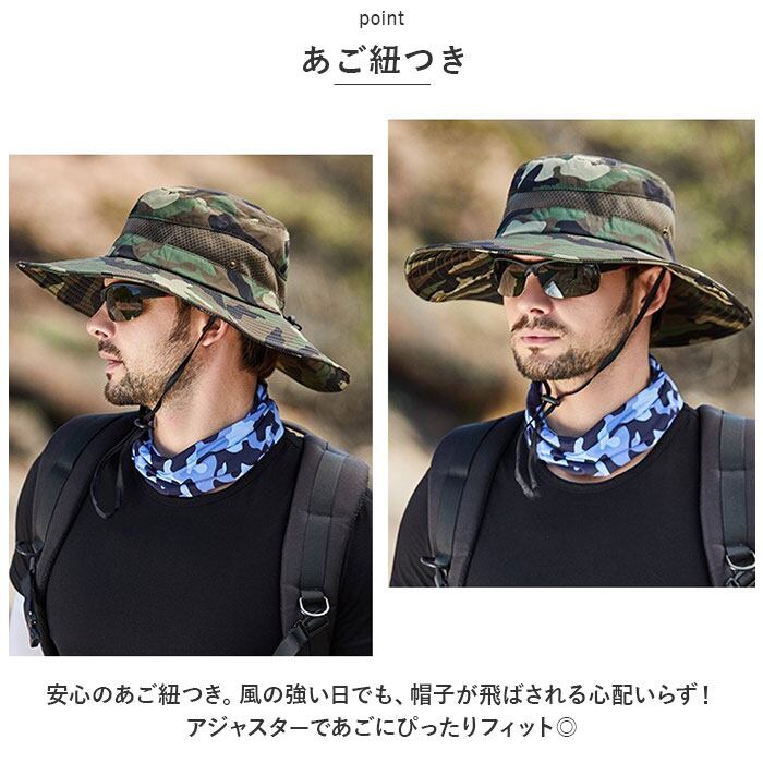 サファリハット メンズ 通販 アドベンチャーハット ブーニーハット アウトドアハット 日よけ帽子 日除け帽子 つば広帽子 帽子 ツバ広 ハット つば広 紐付き カモフラ 迷彩 メッシュ 通気 登山 フィッシング 釣り アウトドアウェア アウトドアウエア