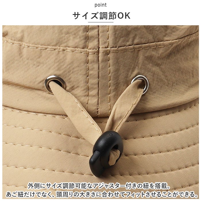 ・安心のあご紐つき。風の強い日でも、帽子が飛ばされる心配いらず!アジャスターであごにぴったりフィット。