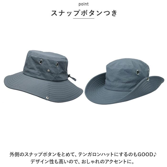 ・外側のスナップボタンをとめて、テンガロンハットにするのもGOOD♪デザイン性も高いので、おしゃれのアクセントに。