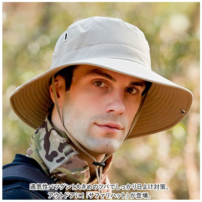 ・通気性バツグン!大きめのツバでしっかり日よけ対策。アウトドアに!「サファリハット」が登場。