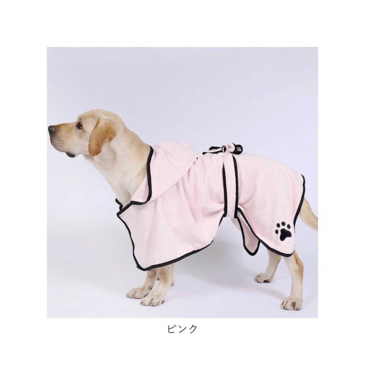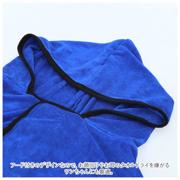 ・フード付きのデザインなので、お顔回りやお耳のタオルドライを嫌がるワンちゃんにも最適。