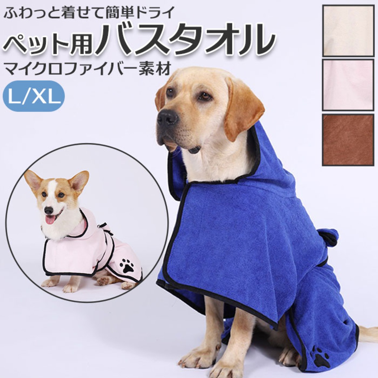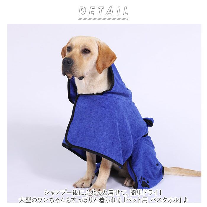 ・シャンプー後にふわっと着せて、簡単ドライ!大型のワンちゃんもすっぽりと着られる「ペット用 バスタオル」♪