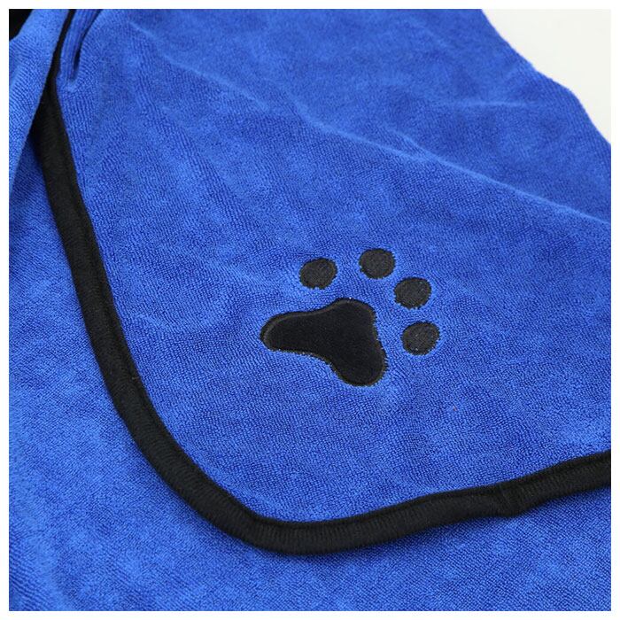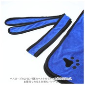 ・マイクロファイバー素材の生地が、濡れたペットの身体から水分をグングン吸収!お風呂上りにブルブルッと水しぶきを上げる元気なワンちゃんにピッタリ。