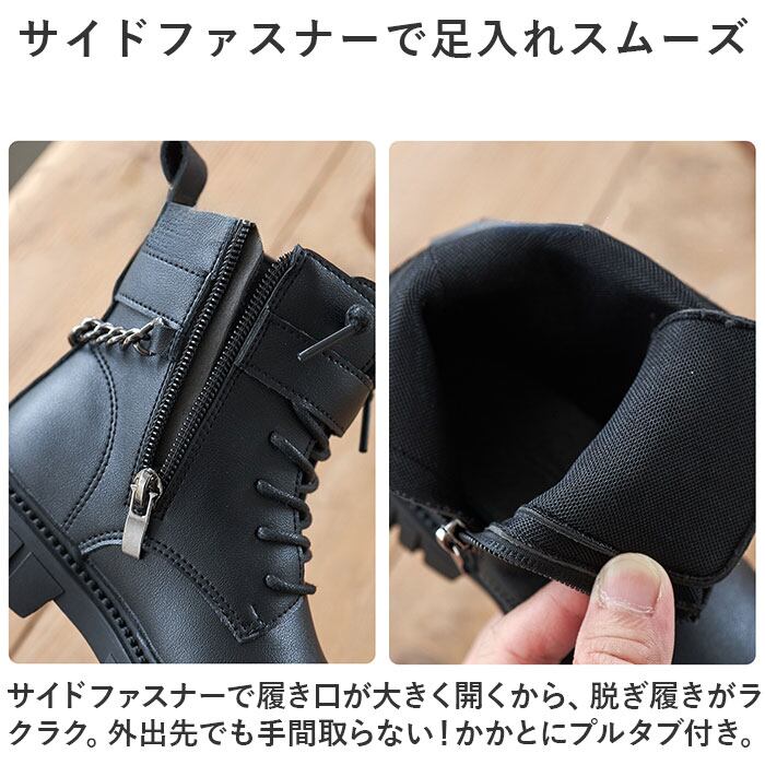 ・サイドファスナーで履き口が大きく開くから、脱ぎ履きがラクラク。外出先でも手間取らない!かかとにプルタブ付き。