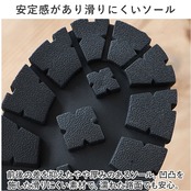 ・前後の差を抑えたやや厚みのあるソール。凹凸を施した滑りにくい素材で、濡れた路面でも安心。