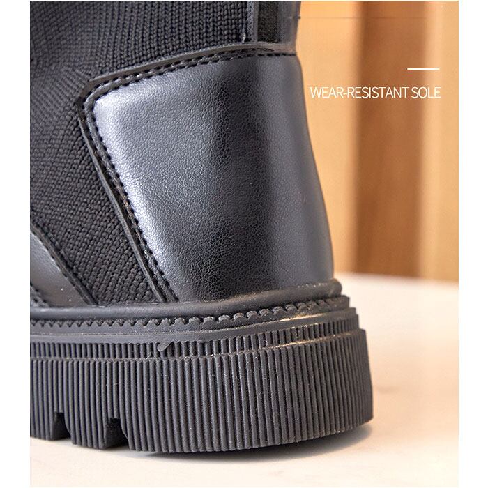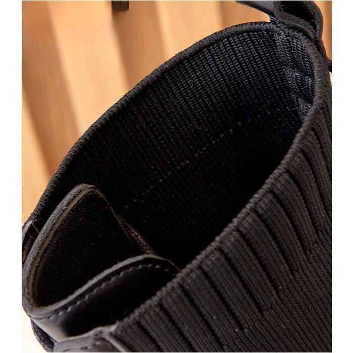 ・サイドはストレッチ性のあるニット素材。合皮などと比べて軽やかで締めつけがなく、脱ぎ履きの際も履き口が開きやすい!(※かかとにプルタブ付き)