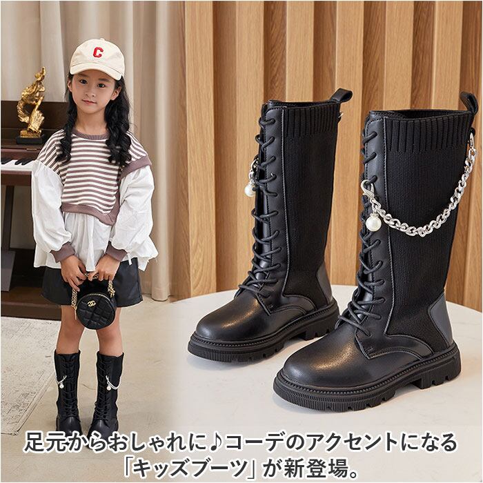 キッズ ブーツ 女の子 すべり止め 滑り止め 通販 ダンスブーツ ダンス靴 ダンスシューズ 子供靴 靴 子供ブーツ 子供シューズ 編み上げ チェーン飾り チェーン 疲れにくい ヒップホップ 子供 こども 子ども 女子 女児 かわいい 可愛い 春 秋 冬