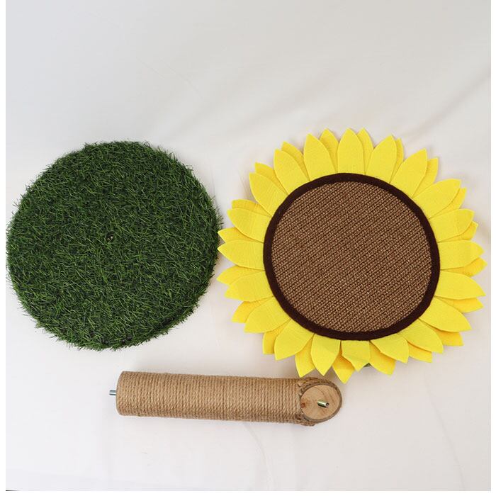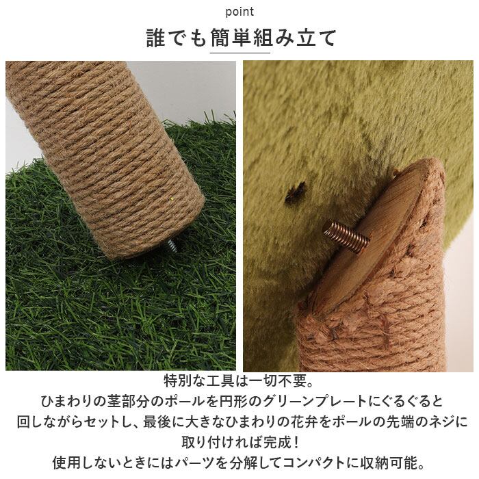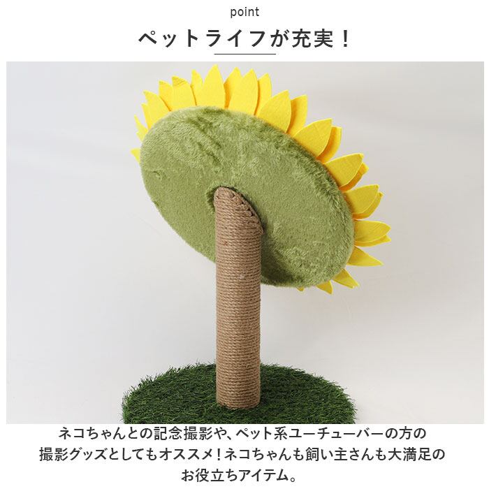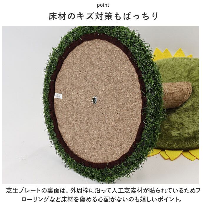・円形のプレートにひまわりの花を支えるポールがしっかりと設置されているから安定感抜群。ネコちゃんがひまわりの花に寄りかかって爪とぎをしても安心。